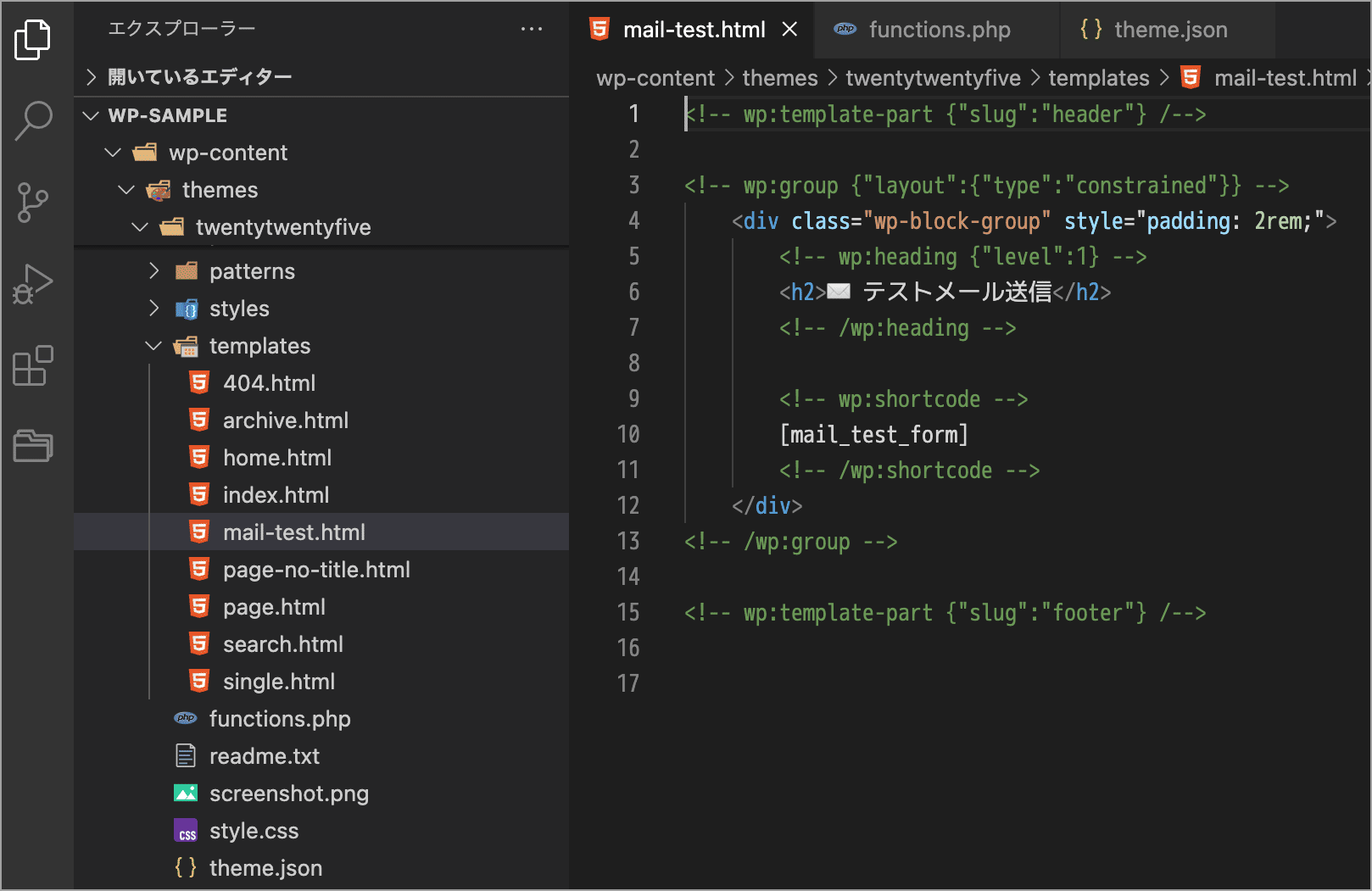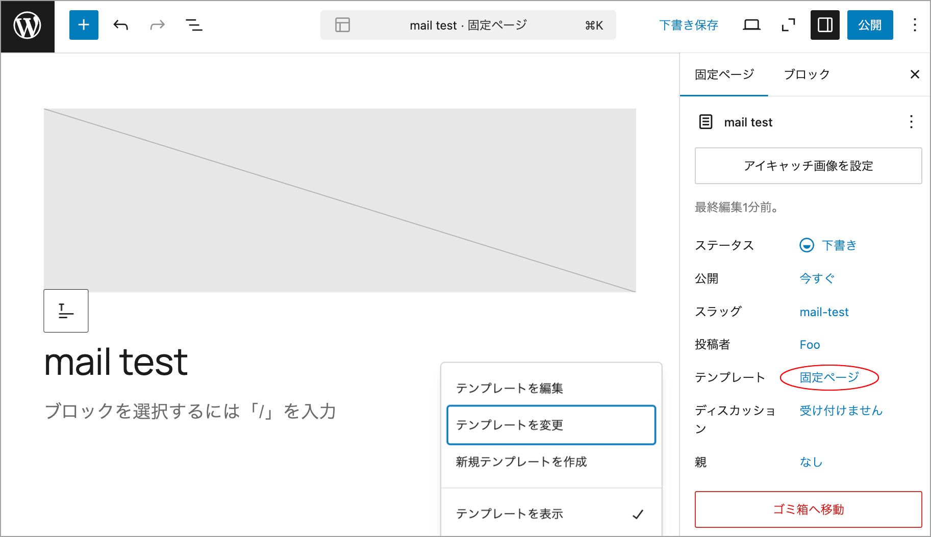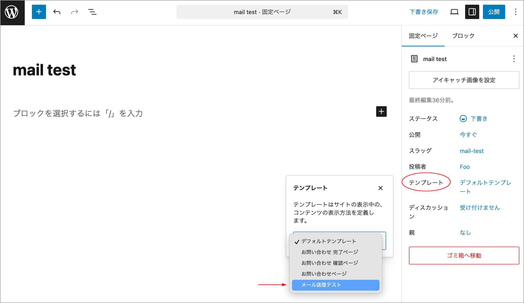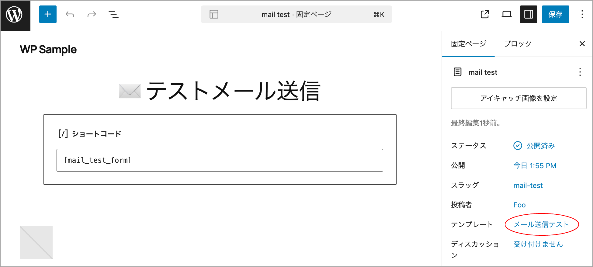 以下を page-mail-test.php などのファイル名で wp-content/themes/your-theme/ に保存します。