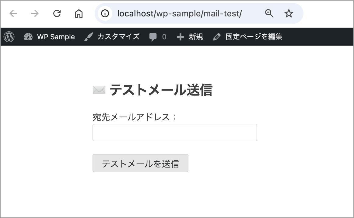 以下は、クラシックテーマで使える wp_mail() の動作確認用の固定ページテンプレートです。このテンプレートでは、宛先メールアドレスをフォームで入力し、ボタンを押すと wp_mail() を使ってテストメールが送信されます。