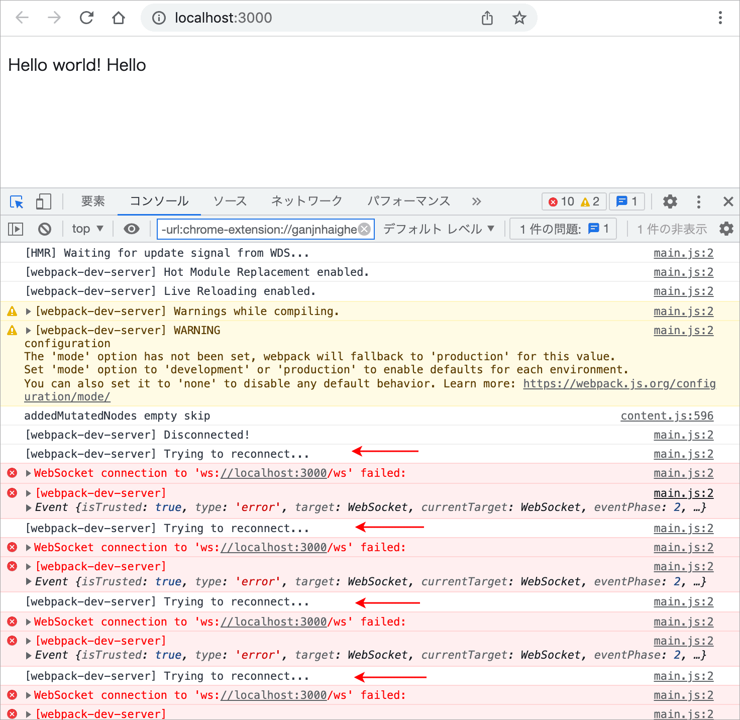 $ npx webpack serve --no-client-overlay return //オプションを指定をして起動