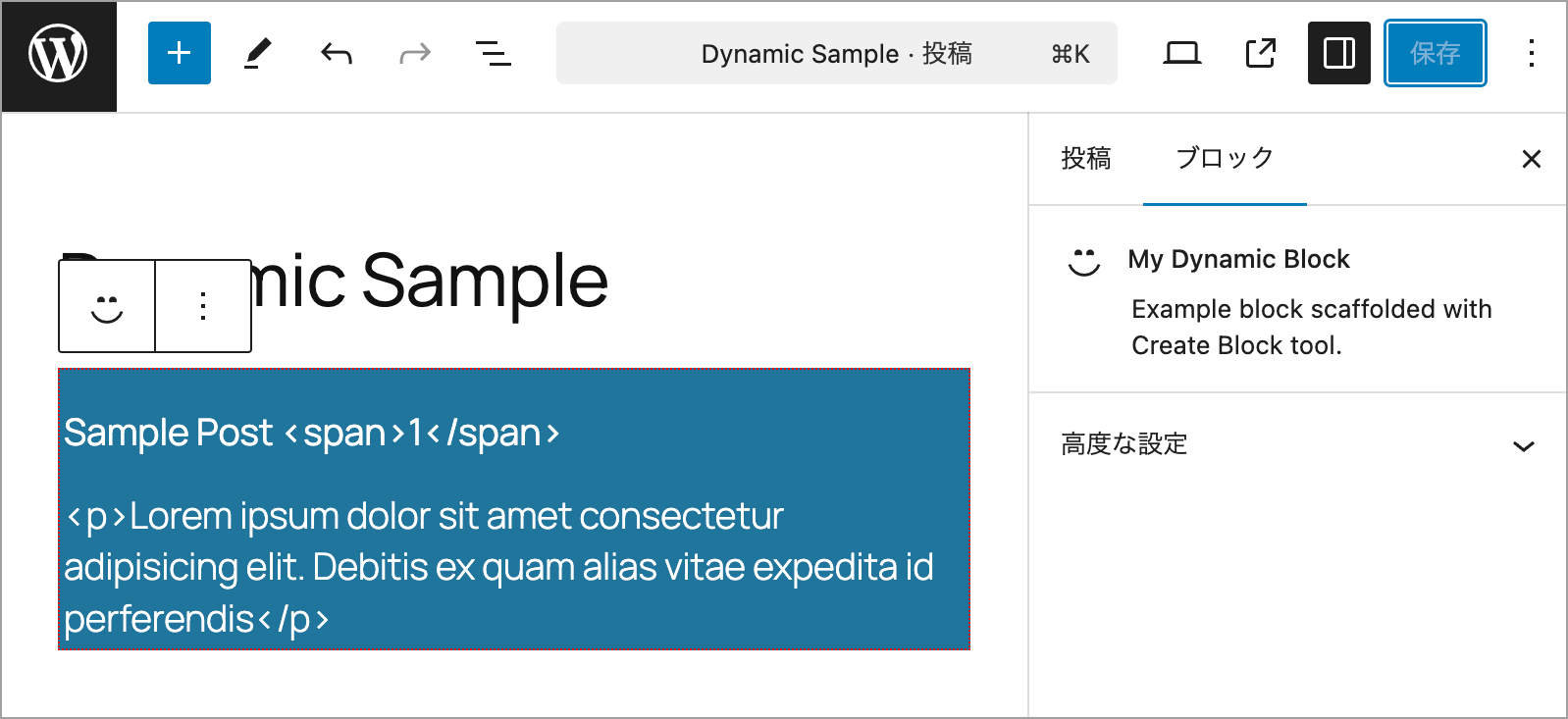 投稿やカテゴリーなどの情報を使用するダイナミックブロックを作成する場合、エディター側(edit.js)では JavaScript でそれらのデータにアクセスする必要があります。