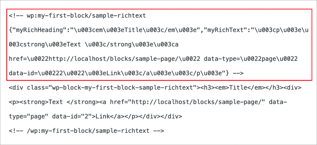 <div class="wp-block-my-first-block-sample-richtext"> <p>テキスト1</p><p>テキスト2</p> </div>
